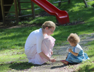 - Pflege am Kind innerhalb der Ganztagsgruppe: Wickeln, Waschen, Füttern, Um- und Anziehen